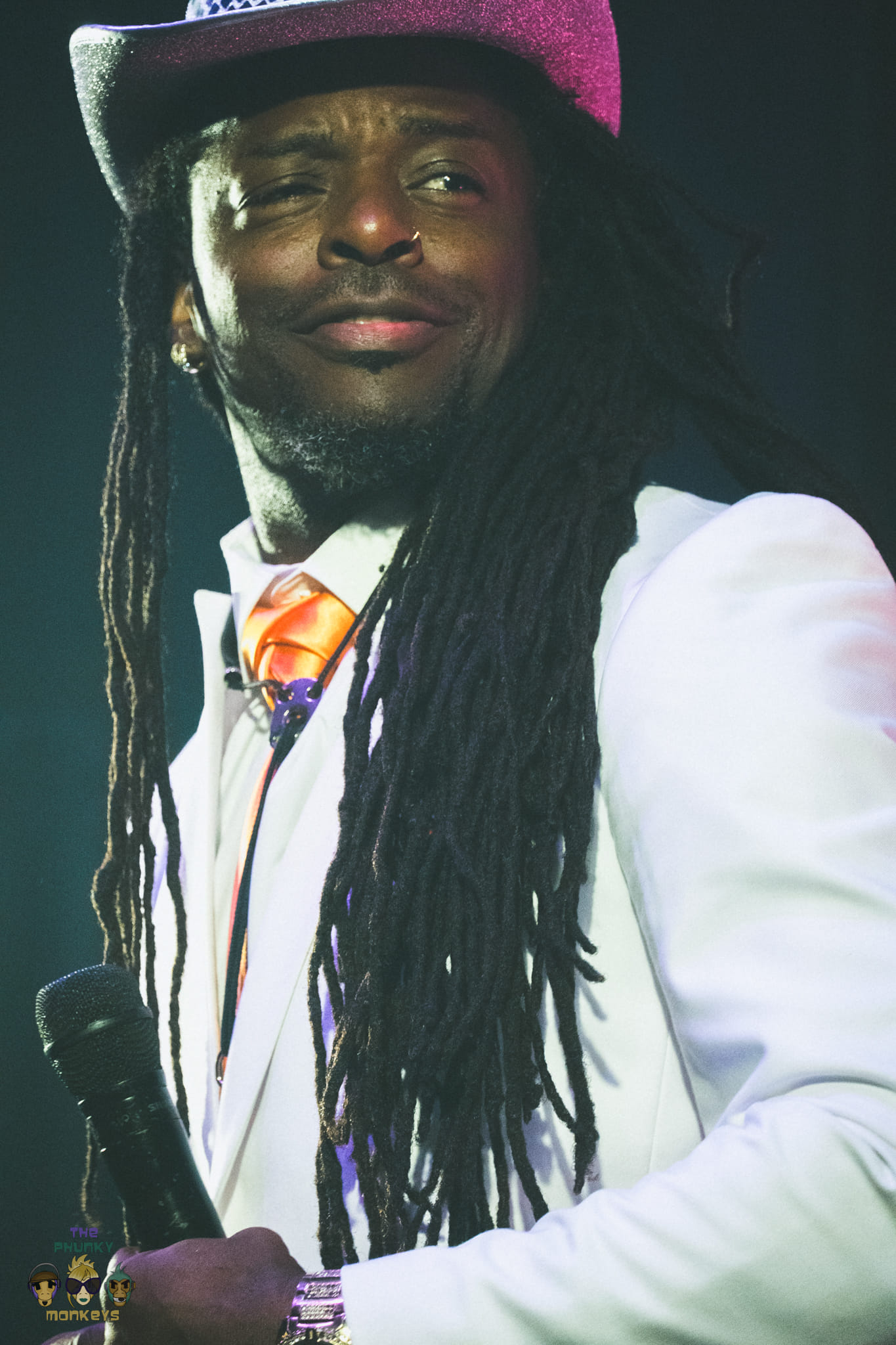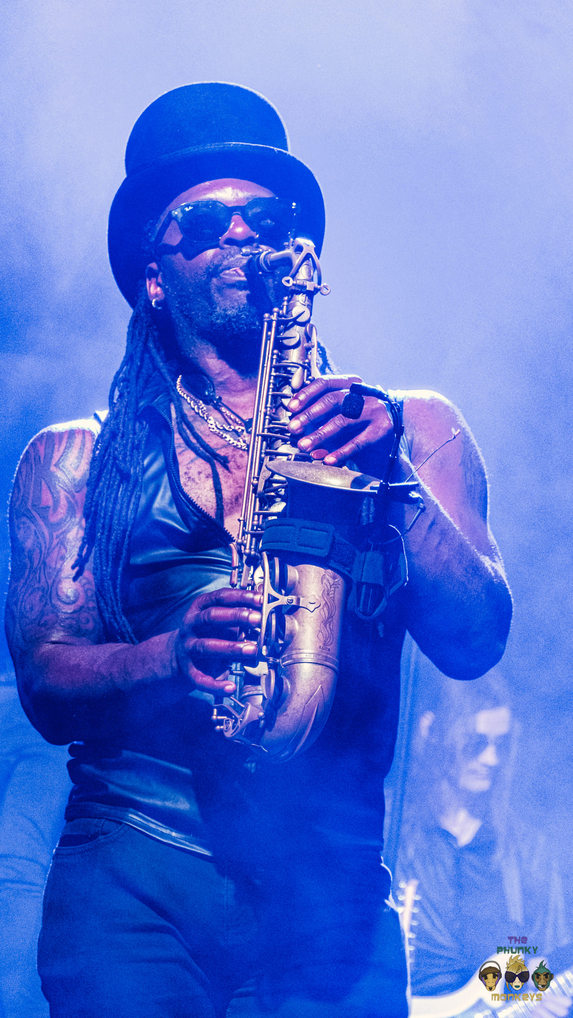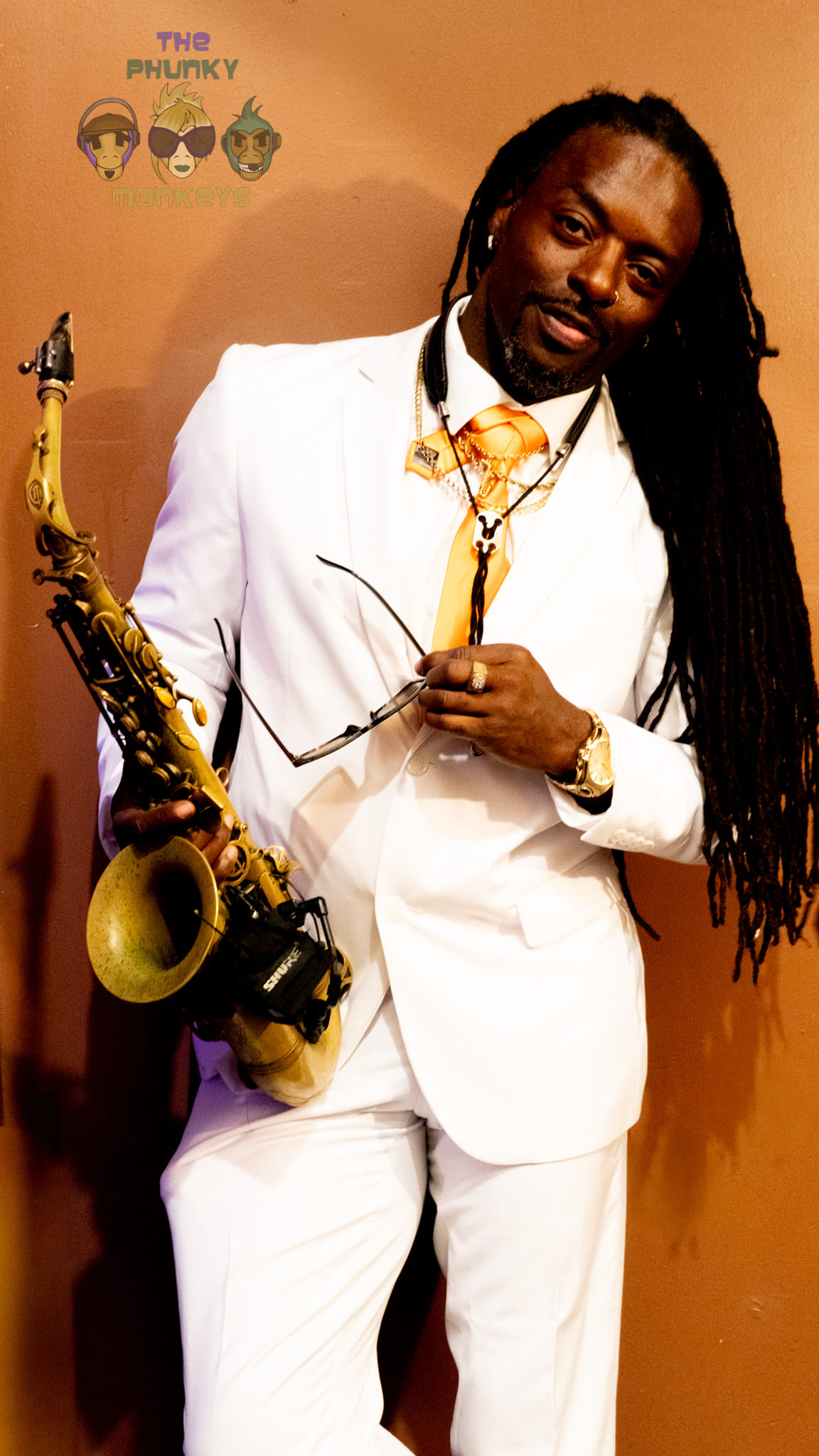 Born in Germany and raised in California, Reginald Smith Jr. picked up his =rst saxophone at the age of 12. By 13, he performed his =rst solo in church and eventually went on to become a prominent gospel artist performing with Vinard Johnson and Twinkie Clark & the Clark Sisters. After graduating high school, Reggie attended Alabama A&M University majoring in music education and leading the saxophone section in the marching band. Reggie continued performing for prominent people, including Senator Johnny Isakson and Wally “Famous” Amos, and eventually launched his =rst gospel album “Walk with Me.” Putting his music education degree to work, Reggie has taught the art of music to students throughout Alabama and Louisiana. He has also toured in Eastern Europe, South America France, Switzerland and Brazil. After touring, Reggie released another original album, “Elephant Shoes.” He has also served as the Music Director of Kirk Franklin’s House of Blues Gospel Brunch, performed and recorded with Reggie Smith and the Smithsonians and is the author of an e-book and DVD entitled “Note Expressions Explained.” Reggie is known as the “Saxsation,” in the Phunky Monkeys and contributes his technical and performance expertise to electrify the performance.